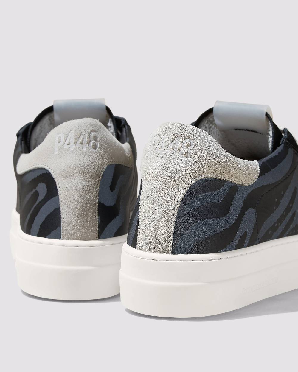 A fresh take on black and white kicks. The Thea Puma Reflex features an off-black embossed reflective leather upper grounded by a black suede tongue, trim and toe and a contrasting light beige suede heel tab. This playful platform runs small, so be sure to size up if you’re in between.