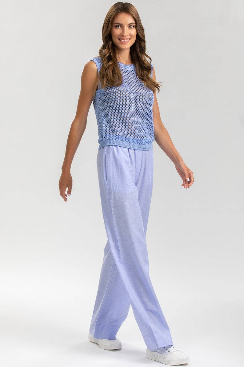 Top girocollo senza maniche a rete realizzato in un morbido filato in cotone. Questa trama con effetto semi-trasparente lo rende molto confortevole e adattabile nella vestibilità grazie anche al filato che è particolarmente morbido.