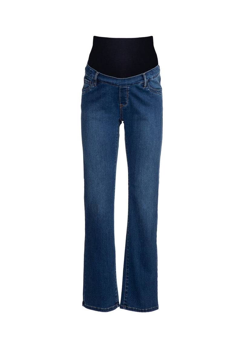 Jeans premaman a 5 tasche con gamba dritta. La confortevole fascia elastica a vita alta garantisce una vestibilità perfetta durante tutte le fasi della gravidanza.