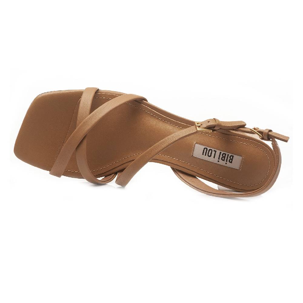 Sandali da donna Bibi Lou modello 613Z40VK fatti in pelle con cinturini a lato caviglia. Colore cuoio, fondo sintetico. Tacco alto 8cm. Comodi ed eleganti.