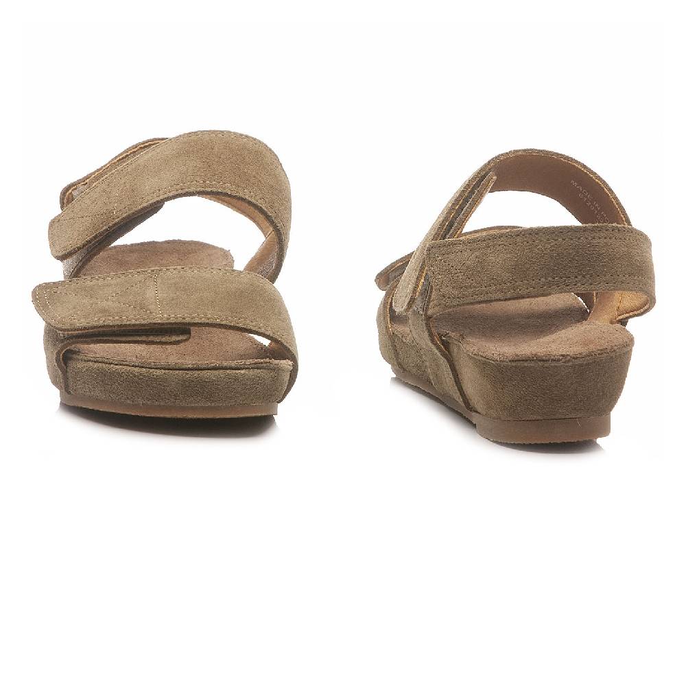 Sandali bassi da donna CA'SHOTT modello Casava 61201222 fatti in pelle con cinturino alla caviglia. Colore verde oliva, zeppa 3,5 cm con il fondo in gomma. Comodi e casual.