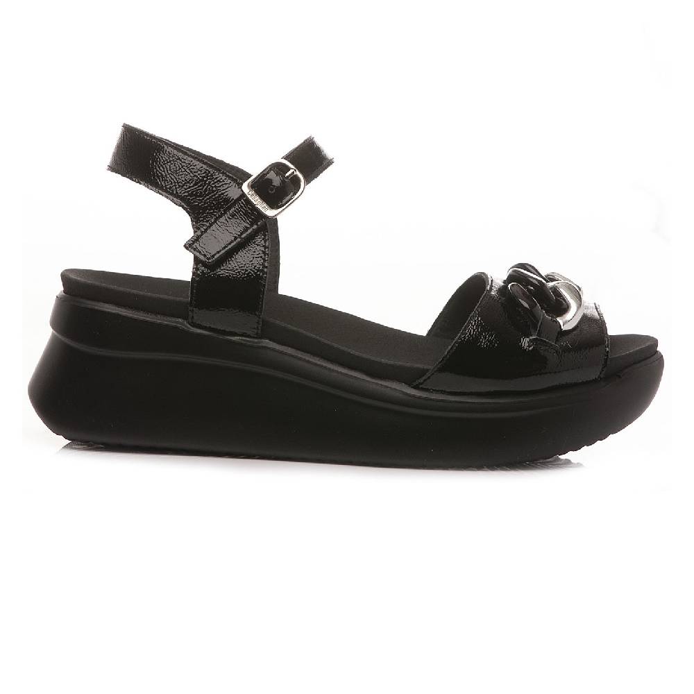 Sandali da donna Callaghan modello 29910 fatti in pelle. Colore nero. Zeppa alto 6cm, fondo in gomma. Comodi e casual.