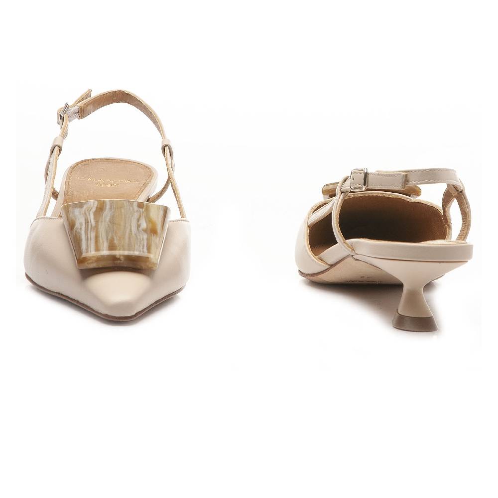 Decollètè da donna Chantal 1962 modello 2215 fatte in pelle con accessorio. Colore beige. Tacco alto 4,5cm. Fondo cuoio. Comode ed eleganti.