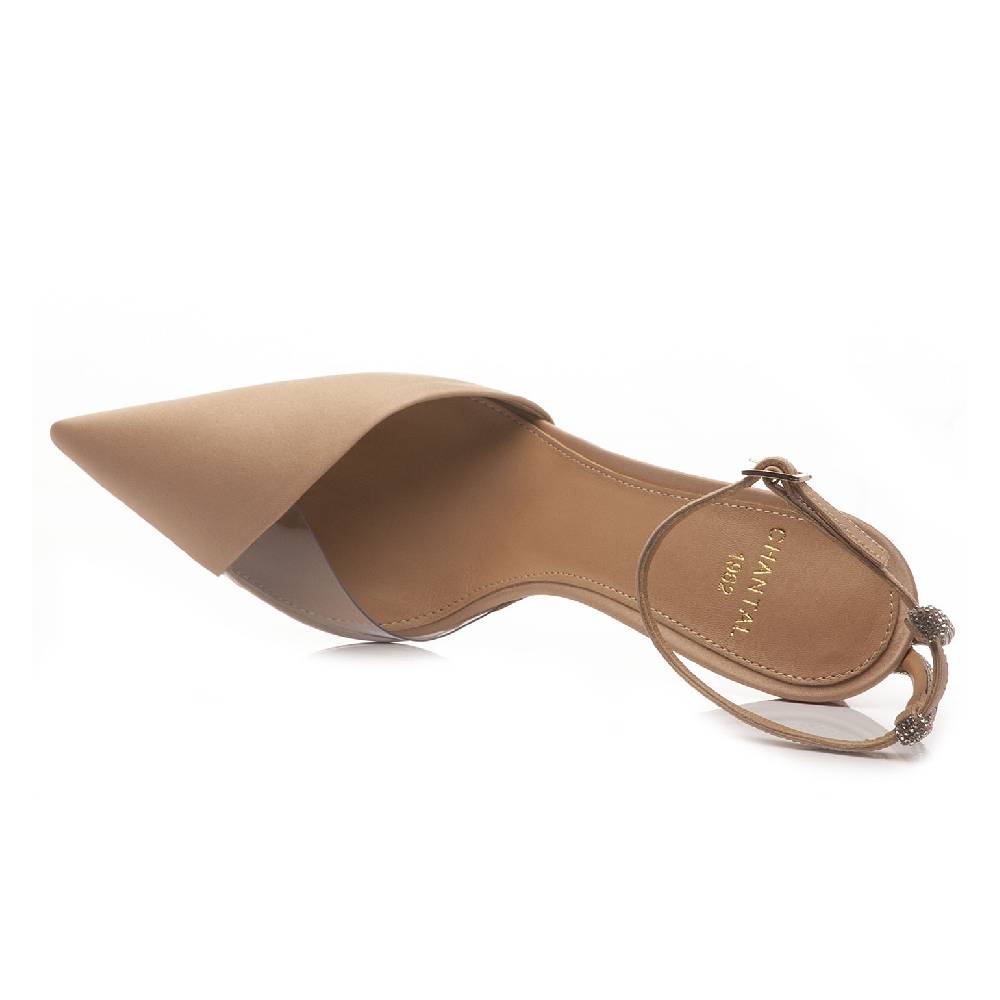 Decollètè da donna Chantal 1962 modello 1932 fatte in pelle e raso con cinturino alla caviglia. Colore nudo. Tacco alto 10cm. Fondo cuoio. Comode ed eleganti.
