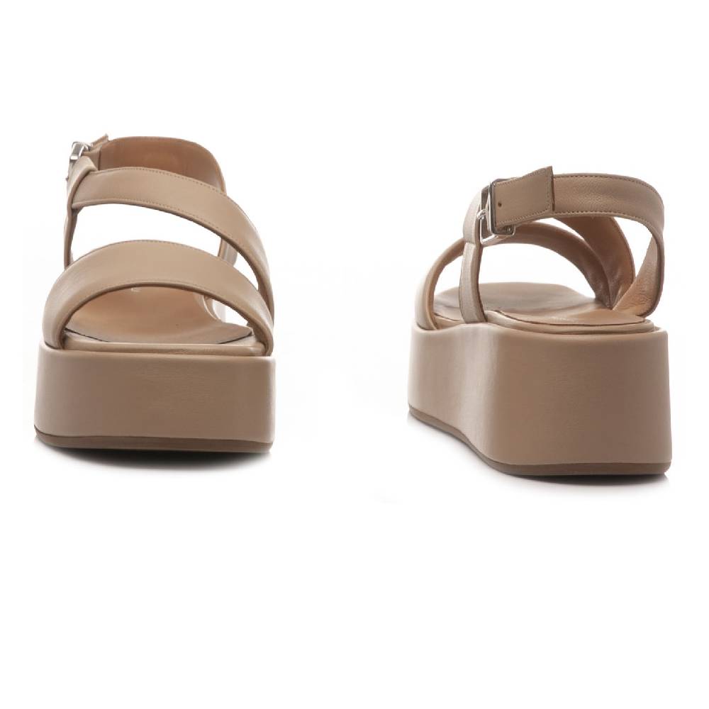 Sandali da donna Gianmarco Sorelli modello 2108/Kira fatti in pelle. Colore nudo. Zeppa piatta alta 6cm, fondo in gomma. Comodi e casual.