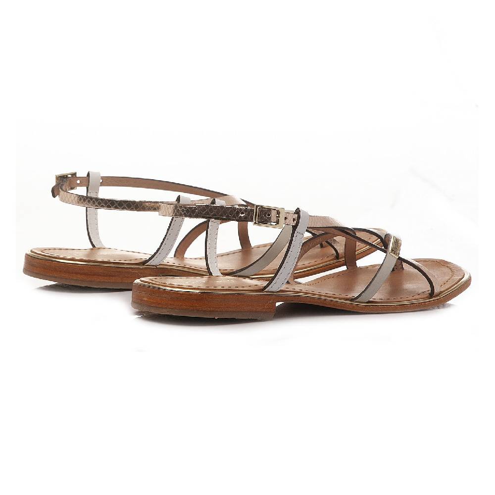 Sandali infradito da donna Les Tropeziennes modello Monaco C063579 fatti in pelle. Colore crema ed oro. Fondo in cuoio. Comodi e casual.