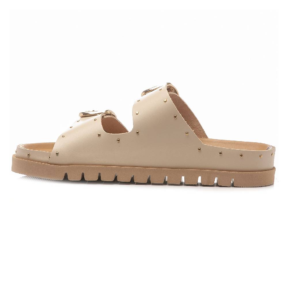 Ciabatte da donna TakeMe modello Teu 2401 fatte in pelle con due fibbie. Colore crema. Fondo in gomma. Comode e casual.