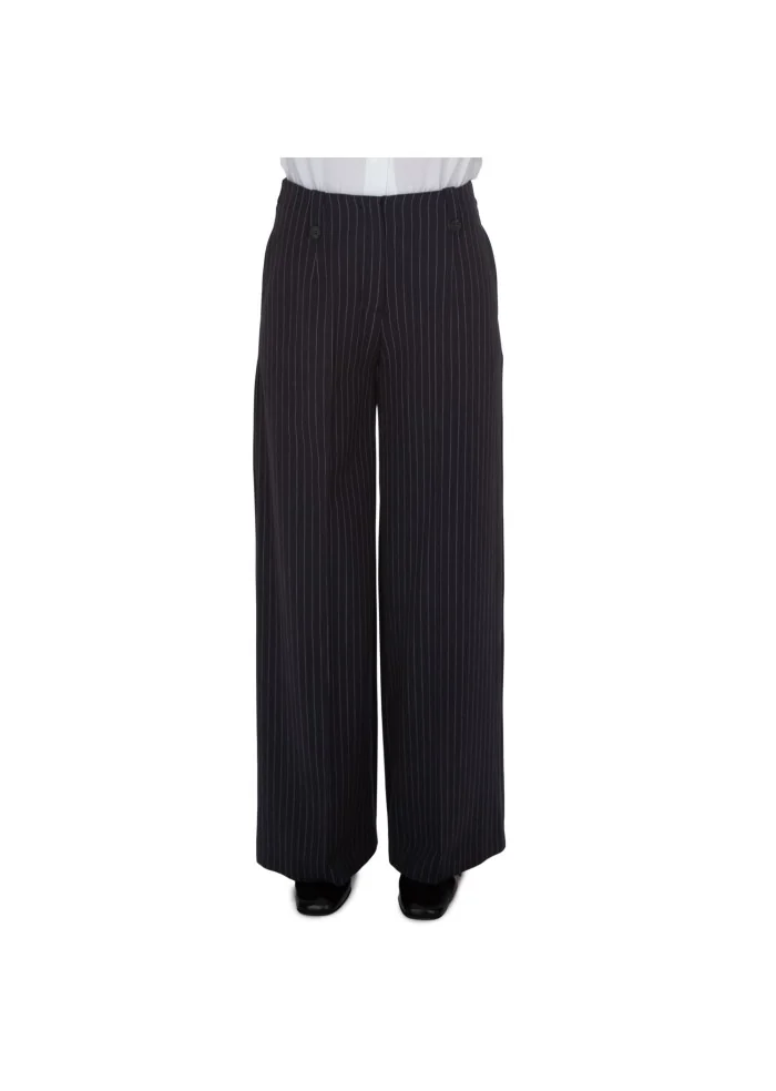 Pantaloni eleganti di Kartika, sono un capo sofisticato e di tendenza. Presentano un taglio ampio a palazzo con motivo a righe, chiusura con zip e bottone e pratiche tasche laterali. Made in Italy.