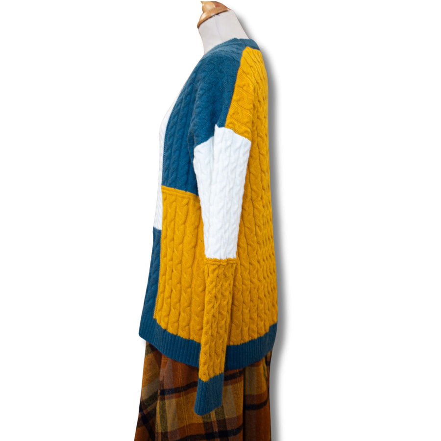Ce pull exclusif Evy est à la fois chaud et douillet grâce à son effet patchwork unique. Avec sa longueur élégante, il est parfait pour les journées froides et vous gardera confortablement au chaud tout en ajoutant une touche de style à votre tenue.