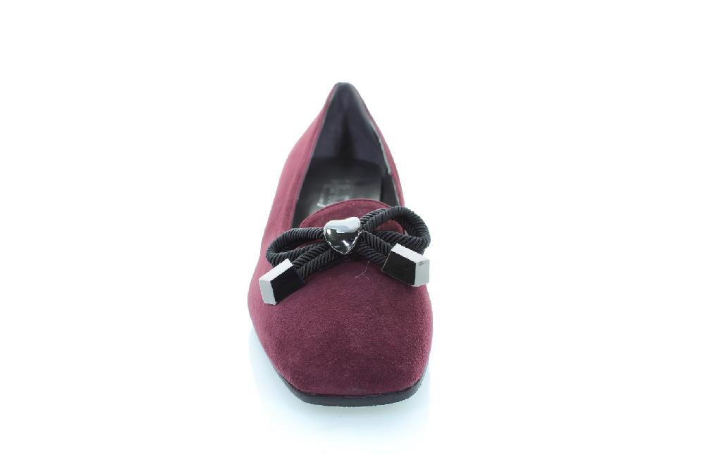 Pantofola in pelle scamosciata con fiocco ornamentale, fodera e sottopiede in pelle, suola in altri materiali, tacco laccato cm 3. Made in Italy