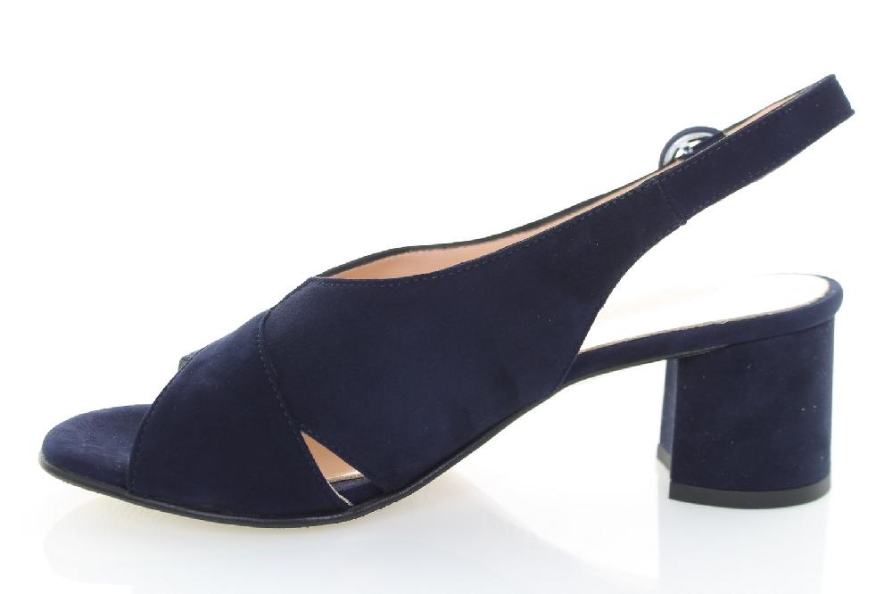 Sandalo in pelle scamosciata a fasce incrociate, cinturino regolabile con fibbia ricoperta, fodera e sottopiede pelle, suola in vero cuoio, tacco ricoperto in camoscio altezza cm 6. Made in Italy