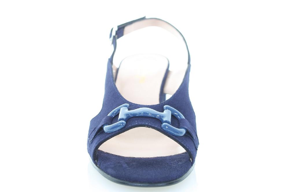 Sandalo in pelle scamosciata arricchito da morsetto ornamentale, cinturino regolabile con fibbia, fodera e sottopiede pelle, suola in vero cuoio, tacco ricoperto in pelle scamosciata altezza 6 cm. 100 % Made in Italy